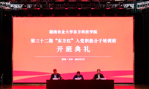 本网讯(学生工作部 言勇)5月19日,学院第三十二期“东方红”入党积极分子培训班开班典礼在大礼堂举行。学院党委书记兼分党校校长史云峰、专职组织员吴峰、党委副书记朱杰辉出席典礼。