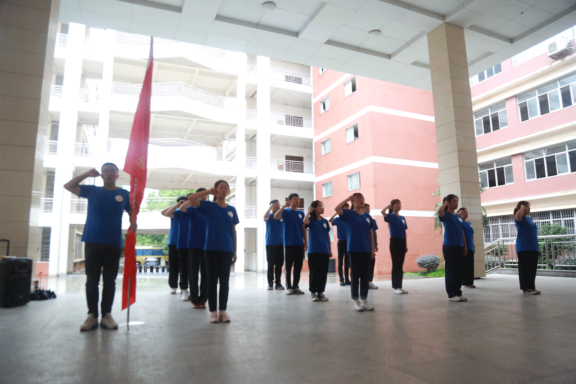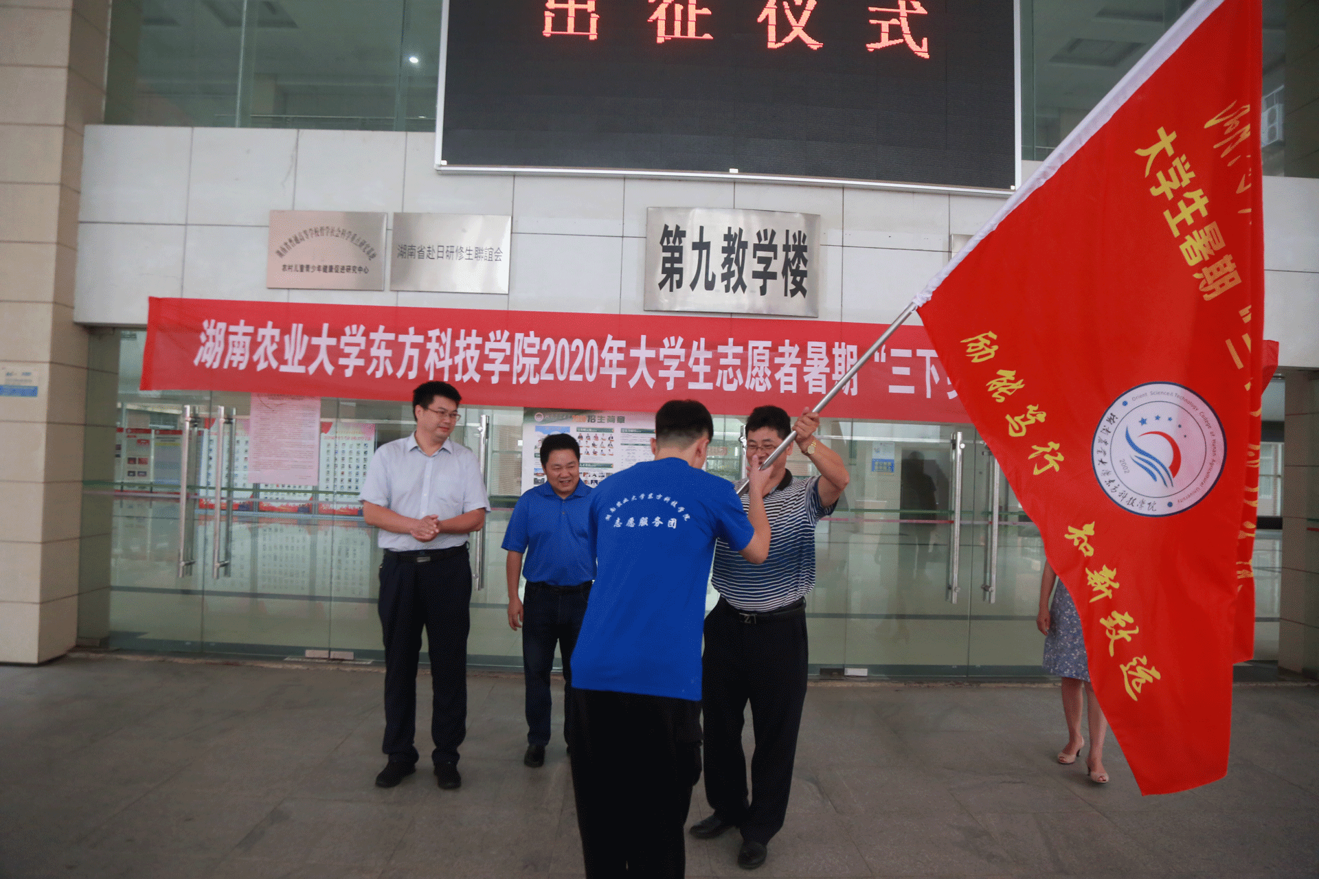 最后,李觅路副院长为学院“三下乡”志愿者服务团队授旗,全体志愿者从第九教学楼列队出征!