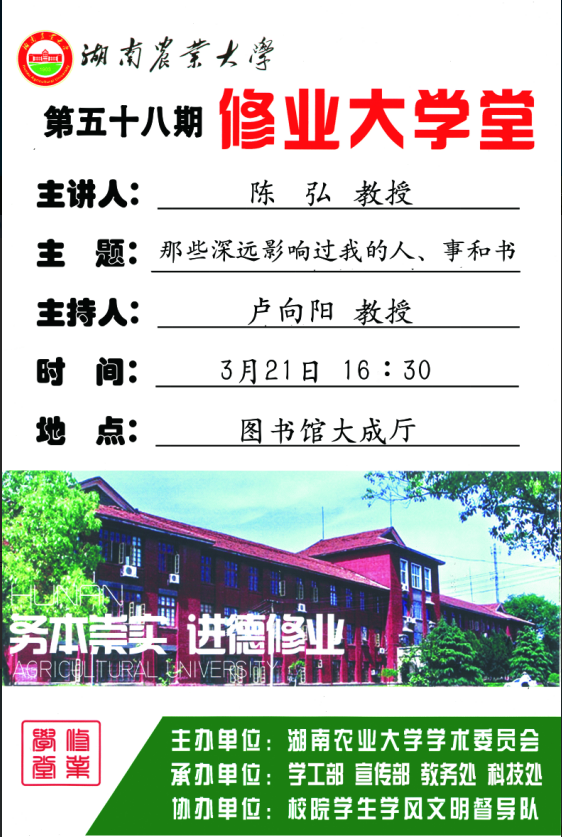 【修业大学堂第五十八期】陈弘教授主讲:那些深远影响过我的人、事和书