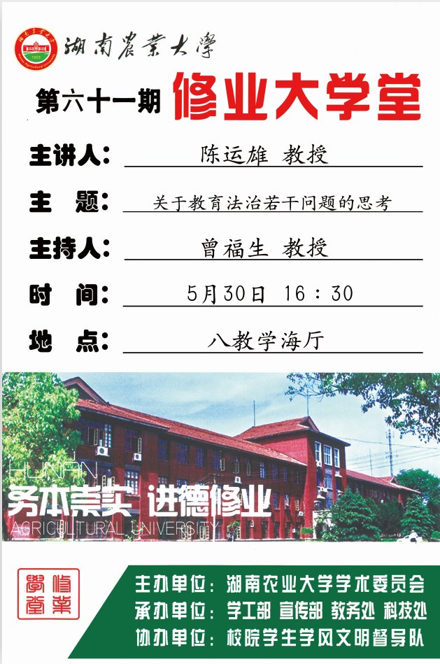 【修业大学堂第六十一期】陈运雄教授主讲:“关于教育法制若干问题的思考”