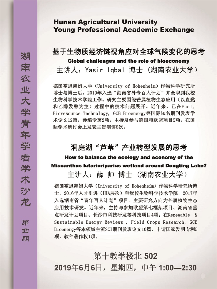 【青年学者学术沙龙第四期】基于生物质经济链视角应对全球气候变化的思考/洞庭湖“芦苇”产业转型发展的思考