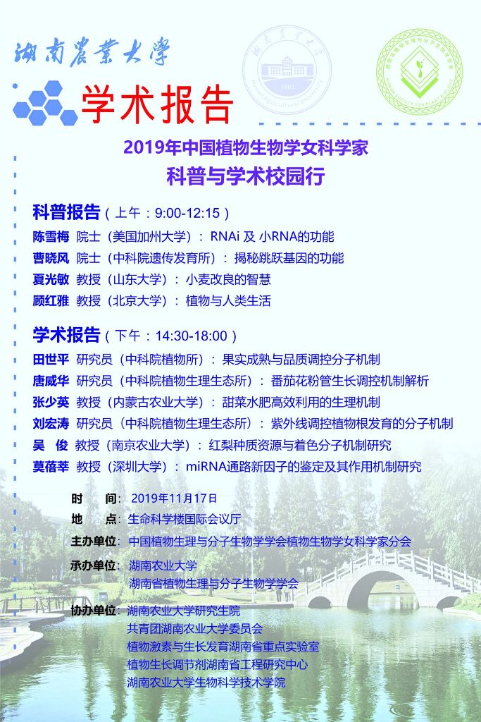 2019年植物生物学女科学家科普与学术校园行