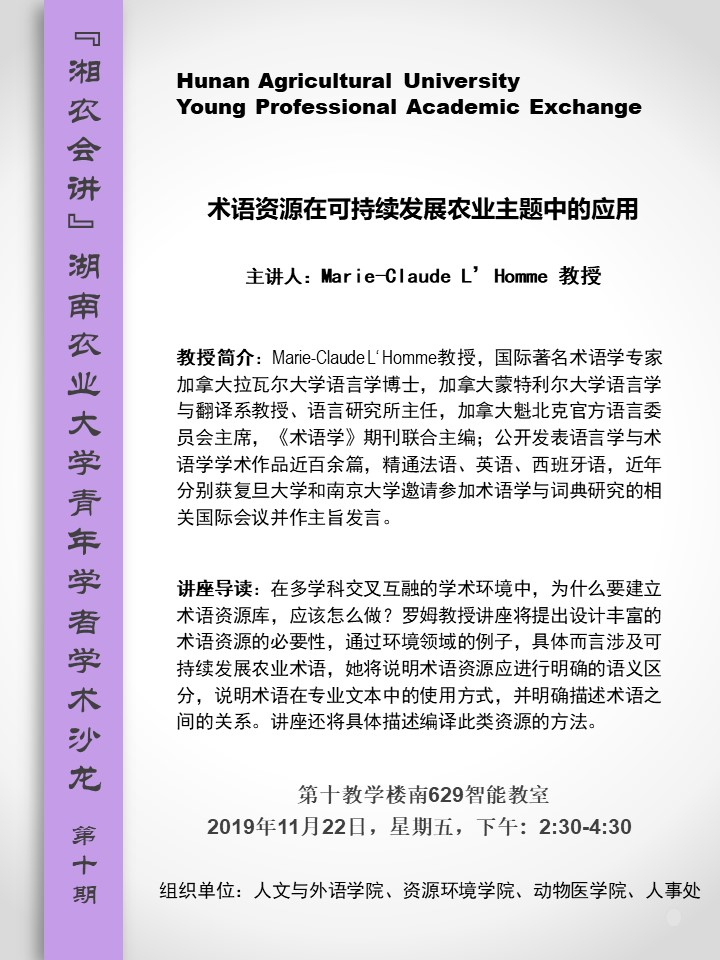 湖南农业大学青年学者学术沙龙第十期——术语资源在可持续发展农业主题中的应用