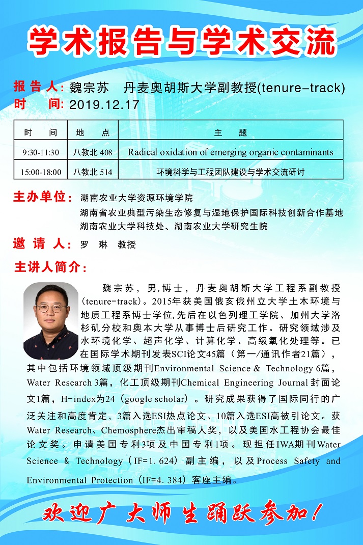 1.Radical oxidation of emerging organic contaminants 2.环境科学与工程团队建设与学术交流研讨