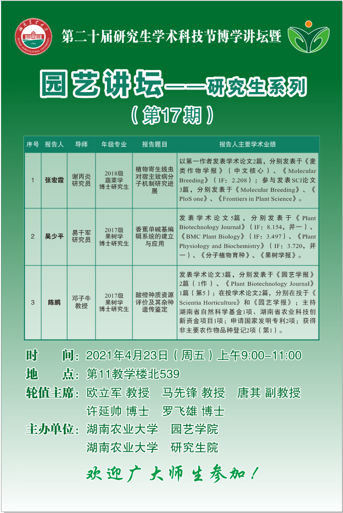 园艺讲坛--研究生系列(第17期)
