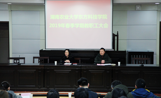 本网讯(党政办  杨雅棋)2月23日下午,学院在第九教学楼南102室召开新学期教职工大会。学院党政领导和全体教职工参加会议,会议由学院党委书记周其林主持。
