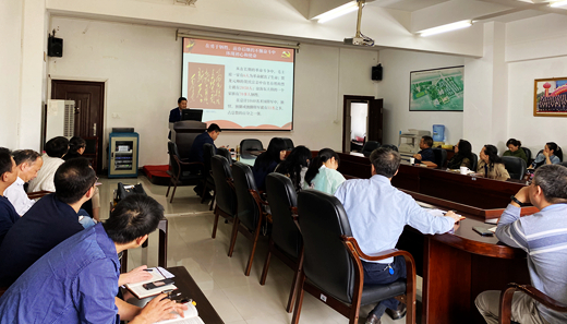 史云峰书记通过形象生动的PPT演示形式,结合大量的事例和数据,以鲜明的观点,对中国共产党近百年和新中国71年的光辉历程做了系统回顾和深入阐述。史云峰指出,中国共产党在勇于牺牲、前仆后继的不懈奋斗中体现初心和使命,在百折不回、愈挫愈勇的坚韧意志中体现初心和使命,在同人民的血肉联系和鱼水深情中体现初心和使命,由初心和使命连成的这条红线已经贯穿中国共产党的全部历史,百年党史给我们的主要启示就是:“不忘初心、牢记使命”。