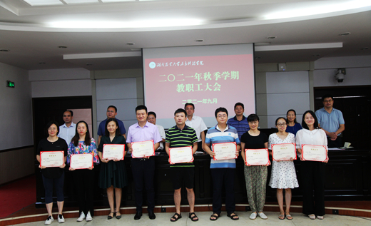 会上对在教育教学、管理服务工作中做出突出成绩的曹小芬等 14 名“优秀教师”,王昭静等 9 名“优秀教育工作者”,王金吉等 4 名“青年教师教学标兵”进行了表彰。会议希望全体教职工坚定信念,立德修身,开拓创新,扎实工作,全力开创学院教育事业新局面,书写学院教育发展新篇章。